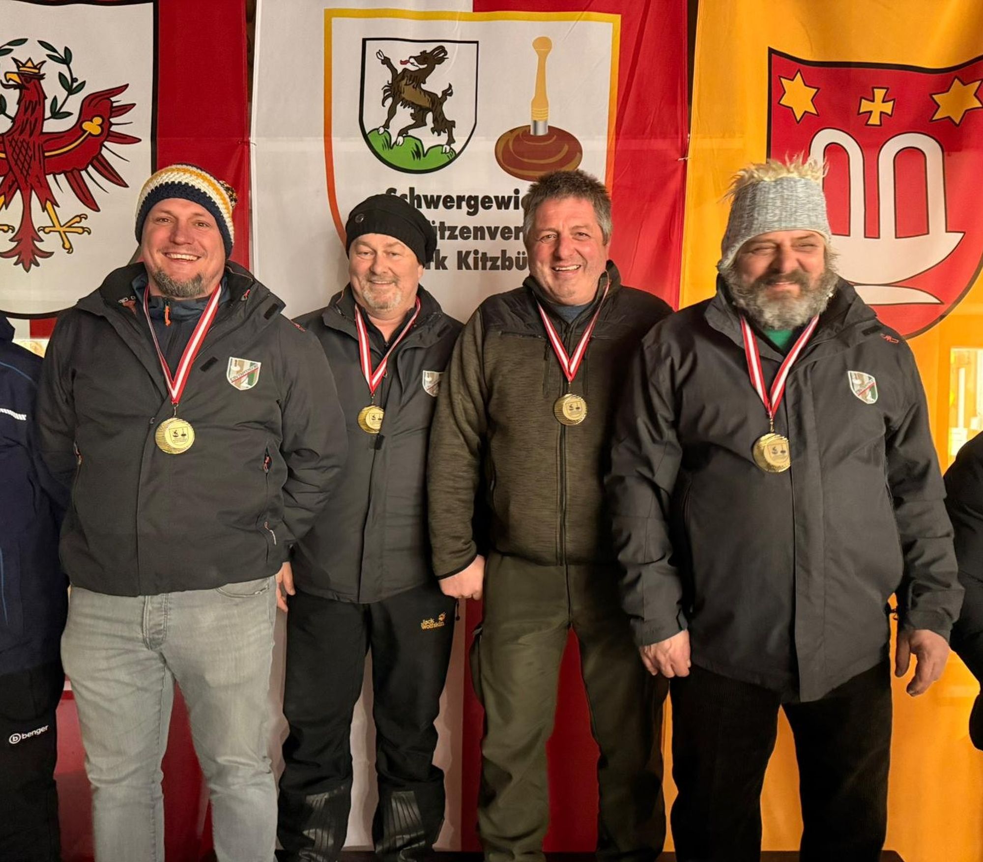 Bei den Herren traten wiederum die 2 Mannschaften des ersten Wettbewerbes wieder an. Diesmal holte sich die Mannschaft des ESV Erpfendorf 1 mit Georg Lechner, Wolfgang Loidl, Stefan Ehleben und Sepp Lechner den Sieg. Damit sind sie nicht nur Bezirksmeister, sondern gleichzeitig auch Landes-, Staats-, Europa- und Weltmeister 🤣. Herzliche Gratulation! Aber auch die Mannschaft ESV Erpfendorf 2 mit der Besetzung Michael Nothegger, Anton Oberleitner, Johann Resinger und Anton Inwinkl erreichte mit dem 3. Rang einen der begehrten Spitzenplätze auf dem Stockerl.
